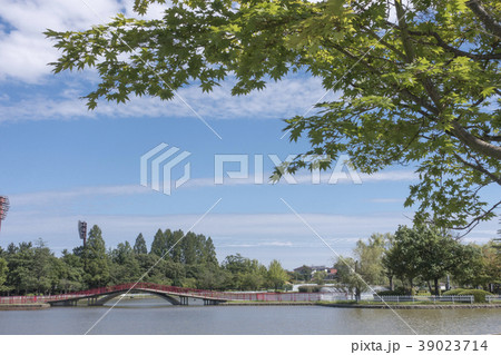 気持ちが良い快晴天青空に映える開成山公園五十鈴湖