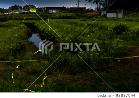 三重県鈴鹿市 初夏の鈴鹿ホタルの里の田んぼの上で舞い飛ぶゲンジボタル