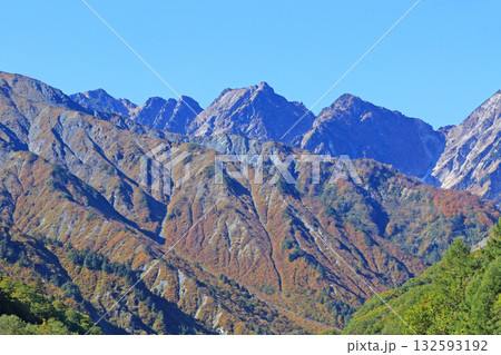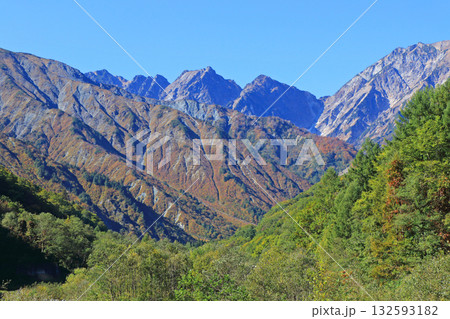 紅葉の八方尾根自然研究路から見る不帰の剣と天狗の大下り 長野県白馬村