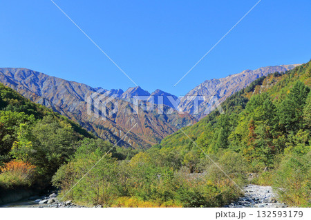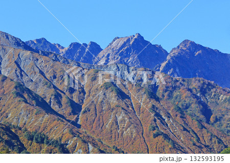 紅葉の八方尾根自然研究路から見る白馬三山と不帰の剣 長野県白馬村