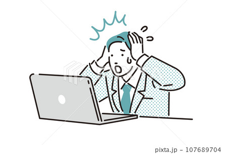 人物 パソコンを見ながら青ざめるビジネスパーソンの男性