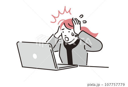 人物 パソコンを見ながら頭を抱えるビジネスパーソンの女性