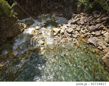 柿其渓谷 黒淵の美しいエメラルドグリーン流れ 長野県南木曾町