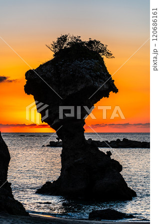 りんご岩(傘岩)の日没後夕焼け 柿泊海岸 ながさきサンセットロード パノラマ 【長崎市】