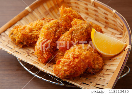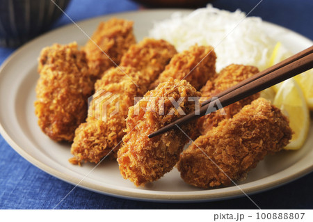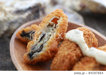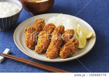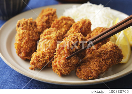 カキフライ(牡蠣フライ)タルタルソース添え。冬のシーフード海鮮料理。カキフライ定食。