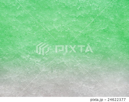 メロン味のシロップがかかっているかき氷を白背景で撮影
