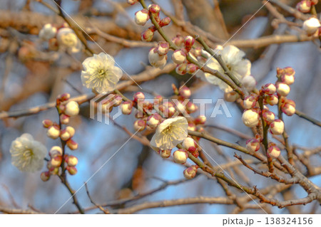 北国の春の訪れ 白梅のほころびに北国の春の目覚め