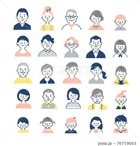 さまざまな年代の人物の顔 セット(ネガティブ)