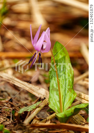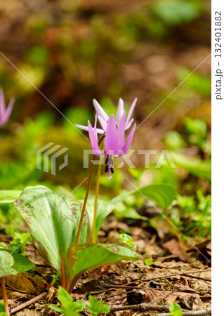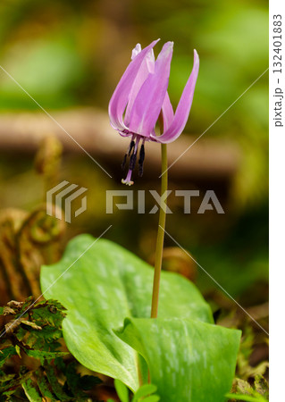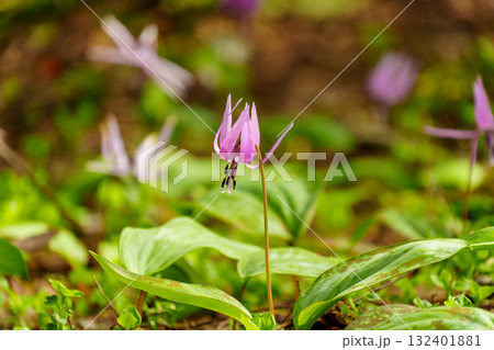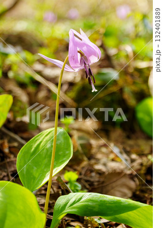 春の野山に咲くピンクの可愛い花 カタクリ
