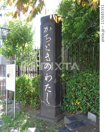 東京都中央区築地にある「かちときのわたし」碑(勝鬨の渡し跡)