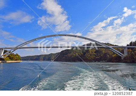 宮城県 気仙沼市 気仙沼湾 遊覧船から眺める大島瀬戸 大島大橋
