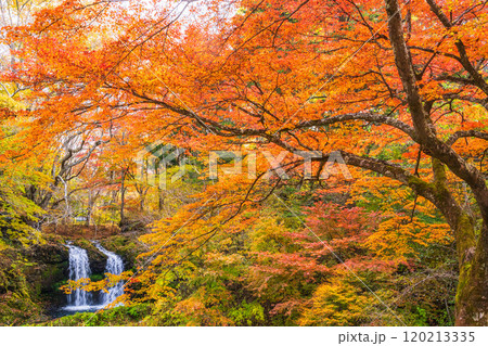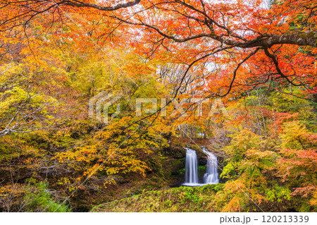 【山梨県富士吉田市】紅葉に包まれた鐘山の滝(かねやまのたき)