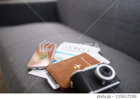 旅行準備アイテムのクローズアップ
