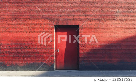 Modern dark door on a textured wall with geometric shadows in bright sunlight
