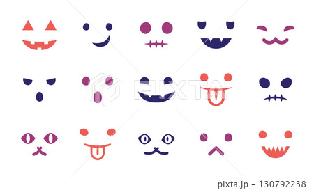 ハロウィンの様々な顔 秋のイベントのシンプルな装飾イラストセット かぼちゃのランタン おばけ 表情