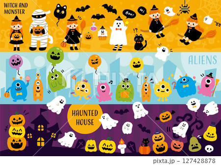 ハロウィーンイラストセット/モンスター、かぼちゃ、シルエット