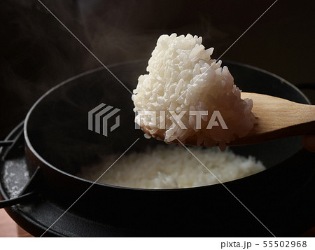 炊いたご飯が入った羽釜