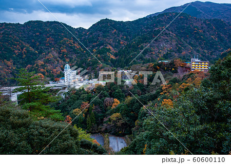 三重県 紅葉の湯の山温泉 夕景 湯の山かもしか大橋