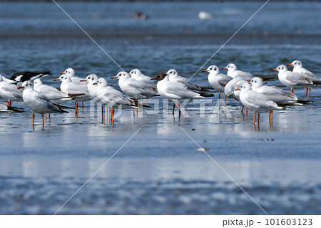 めったに見られない冬の珍しい渡り鳥、海辺のチャガシラカモメ