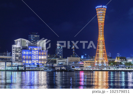 兵庫県神戸市中央区 神戸の夜景 ライトアップされた神戸ポートタワー