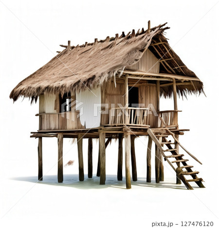Traditional Thai Stilt House with Thatched Roof