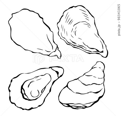 殻付き牡蠣のイラスト_線画
