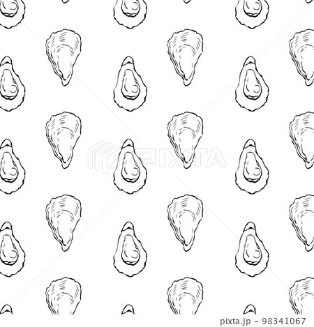 殻付き牡蠣のイラスト_シームレスパターン背景モノクロ正方形