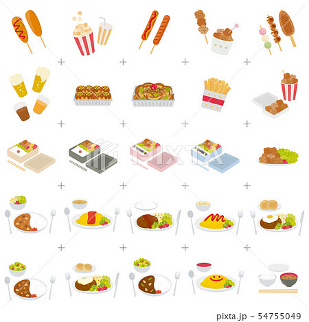 屋台の食べ物と日本のポピュラーなメニューセット