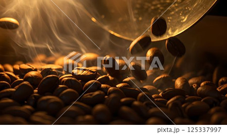 香ばしさ立ちのぼる、焙煎中のコーヒー豆の瞬間3 AI生成画像