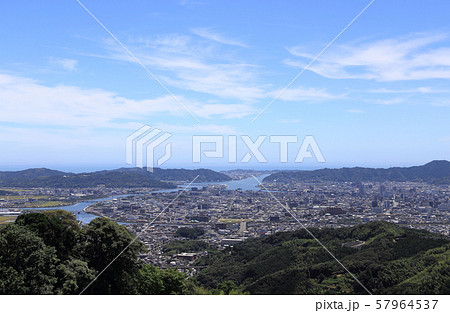 高知市街を北から俯瞰する。浦戸湾を中心に介良付近からはりまや通り付近まで。