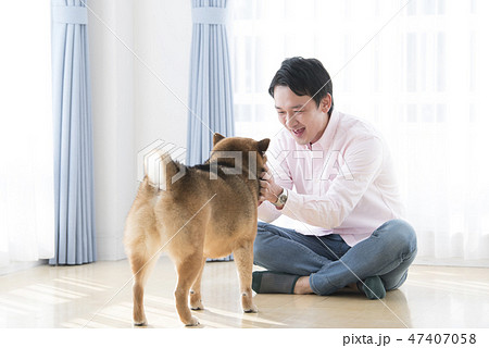 愛犬をかわいがる男性