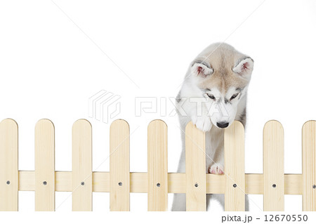 Adorable white Pomeranian puppy spitz.