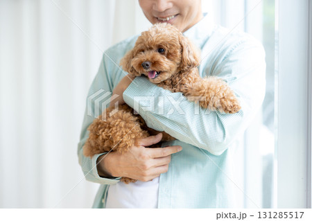 飼い主さんに抱っこされているトイプードル