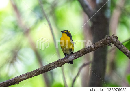 新緑の林で美しくさえずる可愛いキビタキ(ヒタキ科)神奈川県-2024年撮影