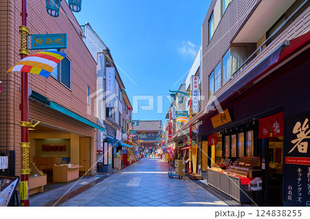 神奈川県川崎市の川崎大師仲見世通りを見る