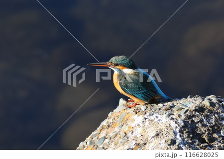テトラポットにカワセミ 川辺の野鳥 青い鳥