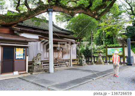 福岡県朝倉市の恵蘇八幡宮の向いにある水神社拝殿と人物
