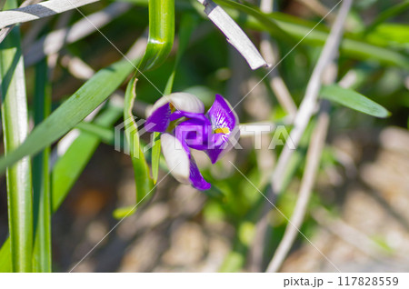 青色と白色の美しい冬のカンザキアヤメ(冬、十二月)