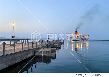 日本の横須賀都市景観 観音崎に立つ観音埼灯台までの道順-3 左奥に自動車運搬船が見える