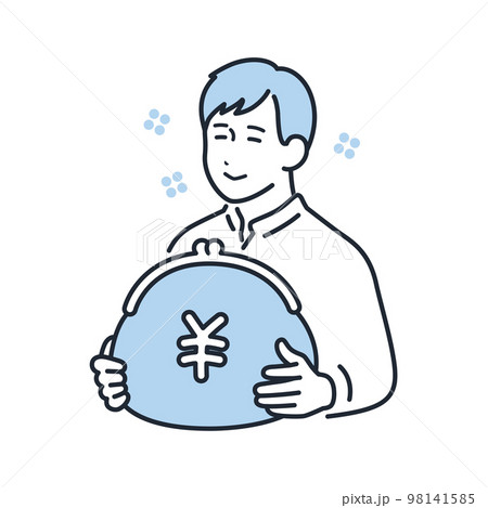 貯金がたまる若い男性のシンプルなベクターイラスト素材
