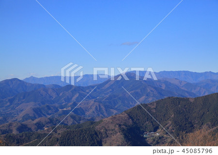 東京八王子(神奈川相模原市)の陣馬山の山頂から西側の雁ヶ腹摺山、権現山方面眺望