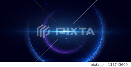 Technology dotted glowing swirl on dark blue and purple background.