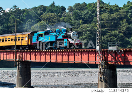 鉄橋を渡る蒸気機関車「機関車トーマス号」