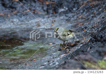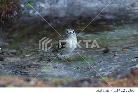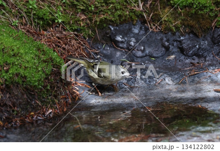 水場にやってきたキクイタダキのオス
