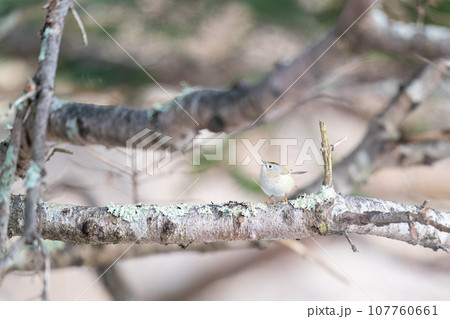 木の枝にとまって餌を探しているキクイタダキ