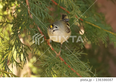 針葉樹に止まるキクイタダキ