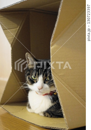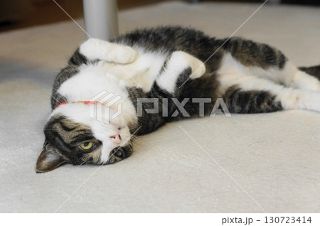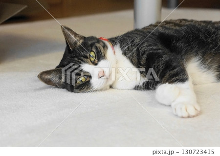コタツ布団の上で丸くなるキジ白の猫02(キャンディ)