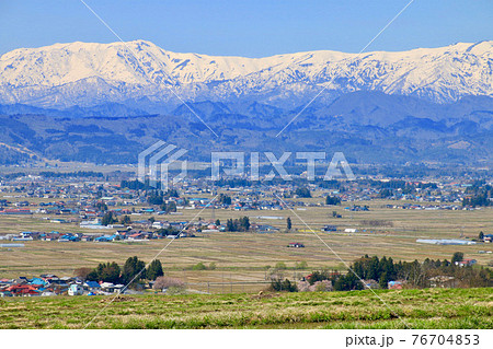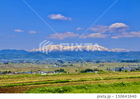 恋人坂からの眺望・春・飯豊山(福島県・喜多方市)