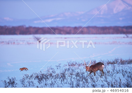 エゾシカときたきつね(北海道・野付半島)