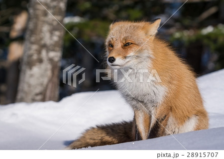 冬毛のキタキツネ キツネ 狐 北海道自然 もふもふ